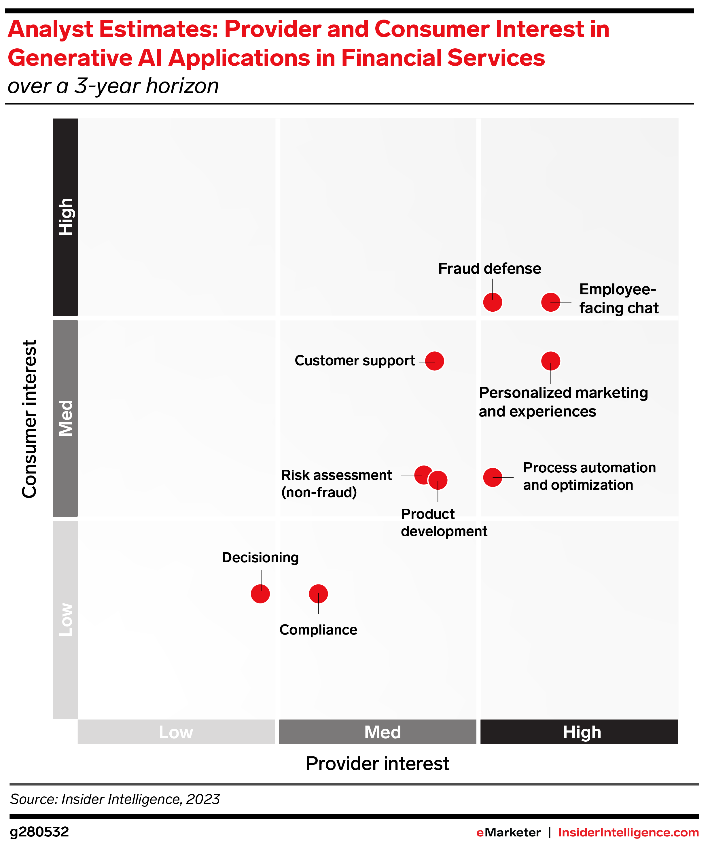 • In the meantime, they’ll narrow their focus to solving a short-term pressing need: improving employee efficiency. For example, Deutsche Bank is testing genAI to provide insights to financial analysts, while Morgan Stanley built a tool to help relationship managers deliver relevant suggestions to customers in real time.