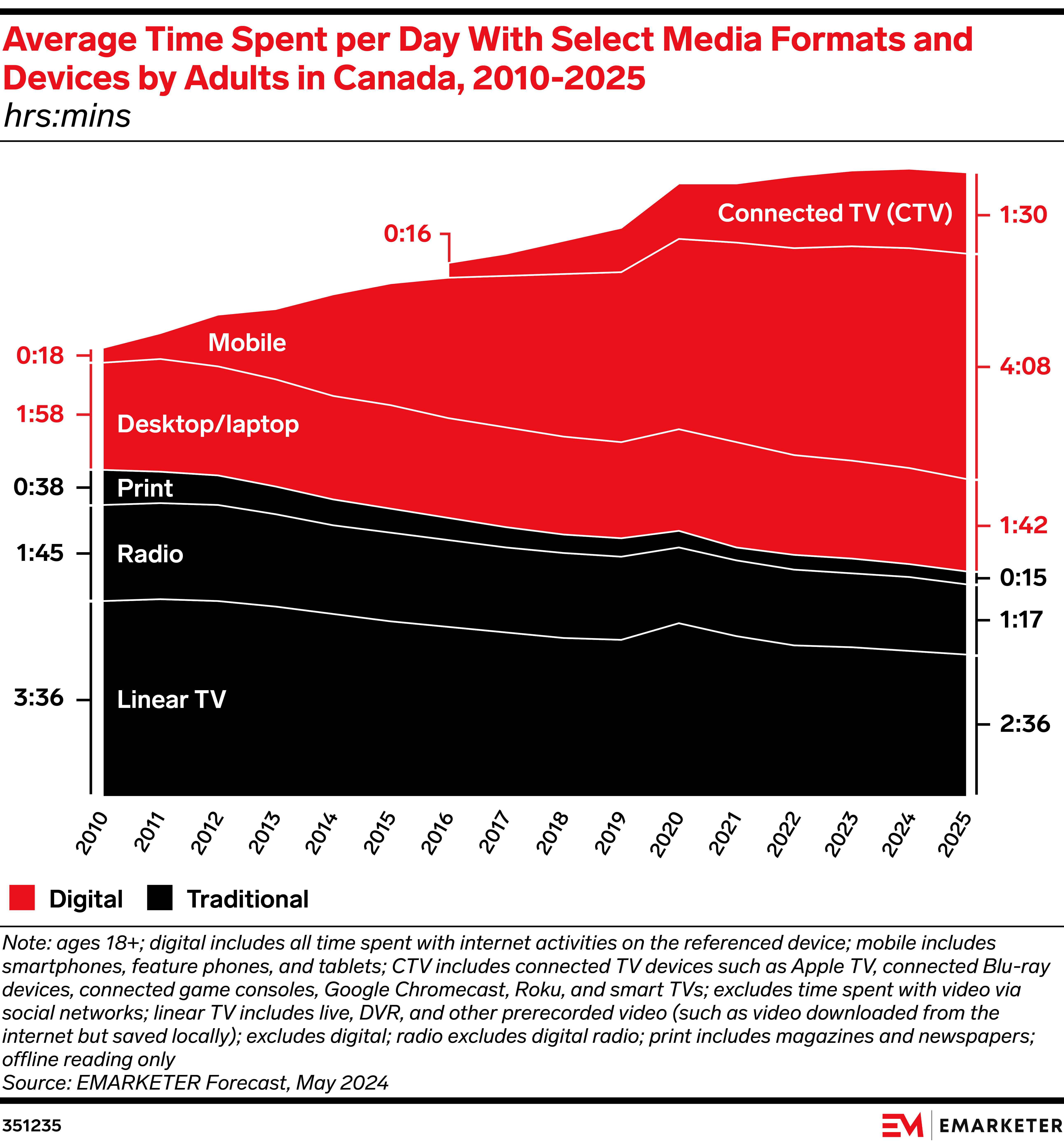 Our annual time spent with media in Canada estimates are a must-read for marketers developing a media mix that best engages audiences. An increasingly fragmented mediascape presents challenges and new opportunities for advertising effectiveness.