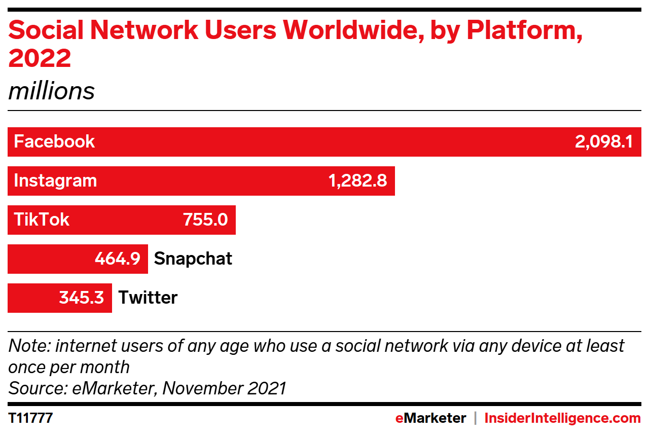 KEY STAT: Facebook is the leading social network by far, but our inaugural forecast reveals that TikTok is now the third-largest worldwide platform.