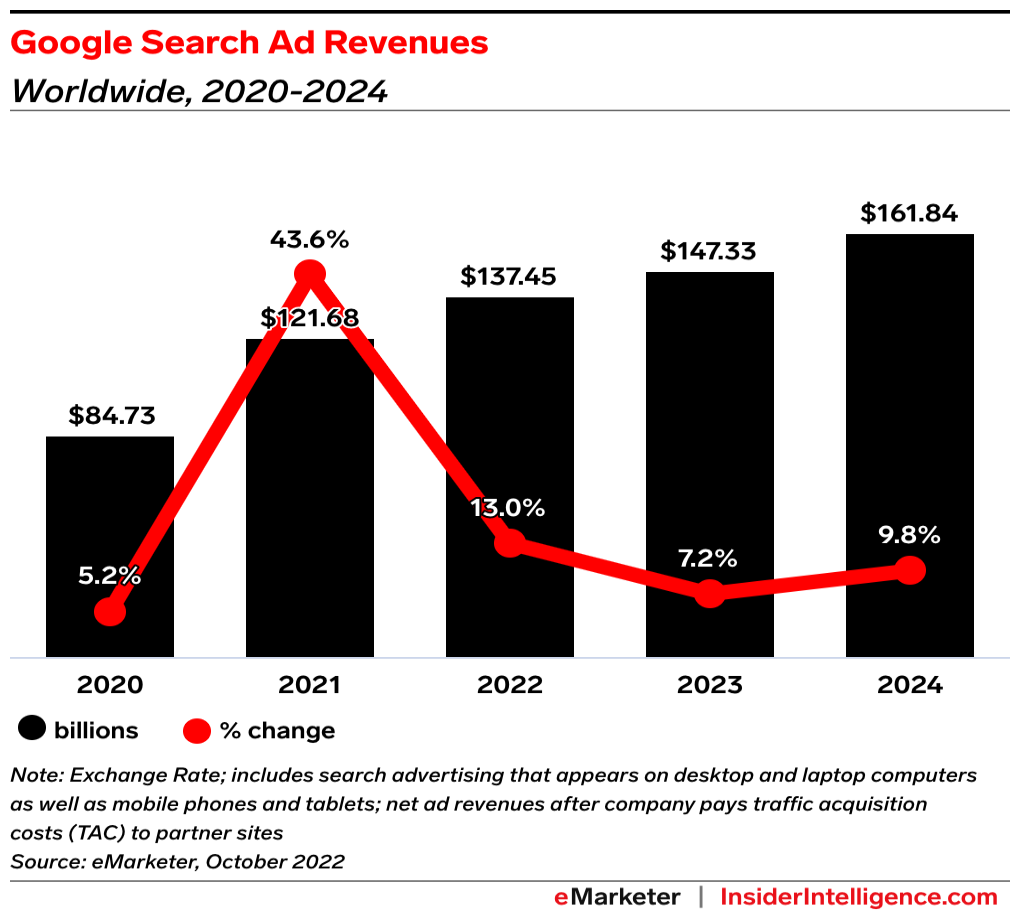 With Google having had a weak Q3 in part on account of its ad business, this doesn’t bode well for its Q4 results—and its search ad revenue growth will be nearly half of what it mustered this year.