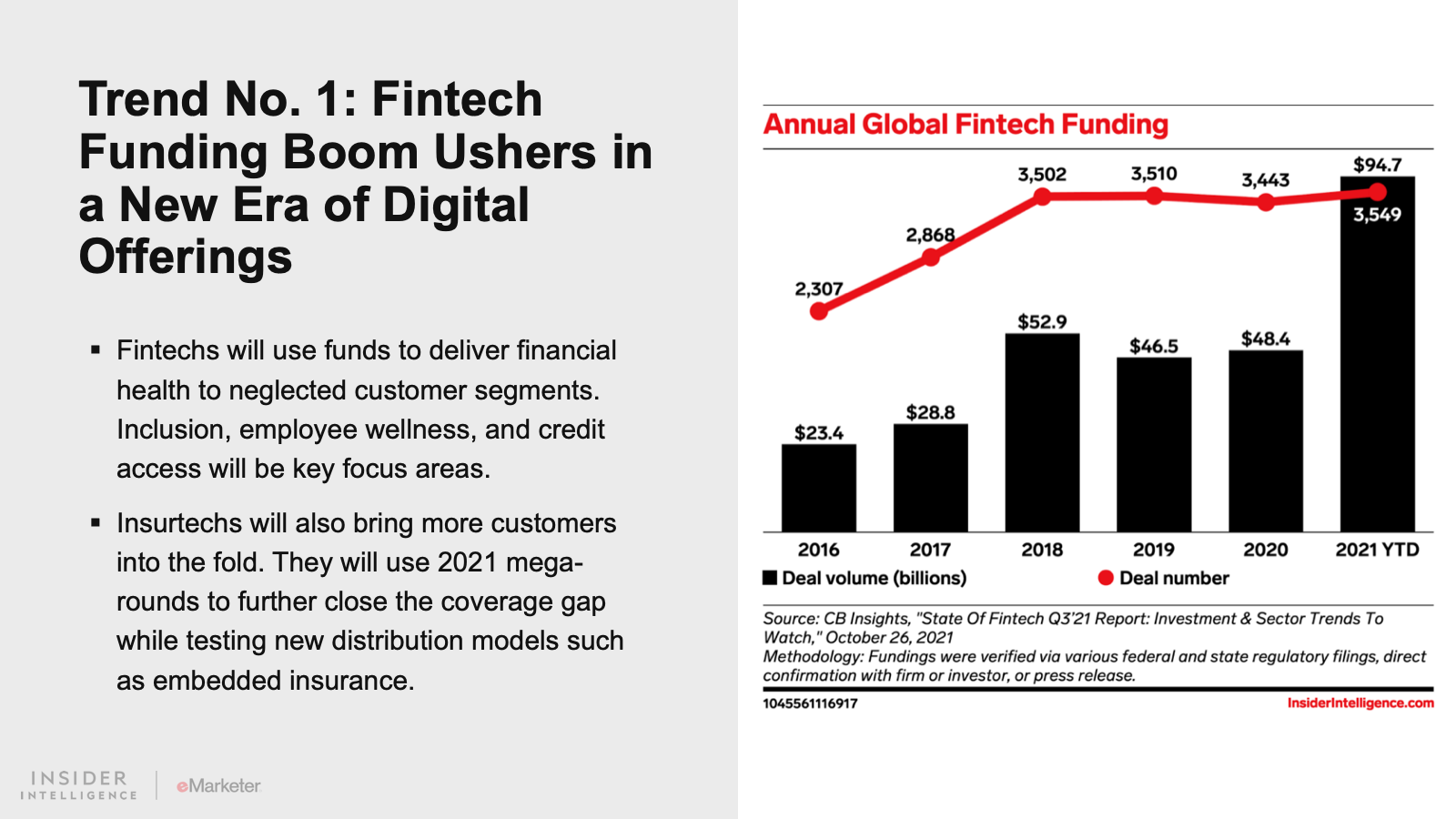 KEY STAT: Global fintech raised $94.7 billion in the first three quarters of 2021, just $200 million less than the past two years combined.
