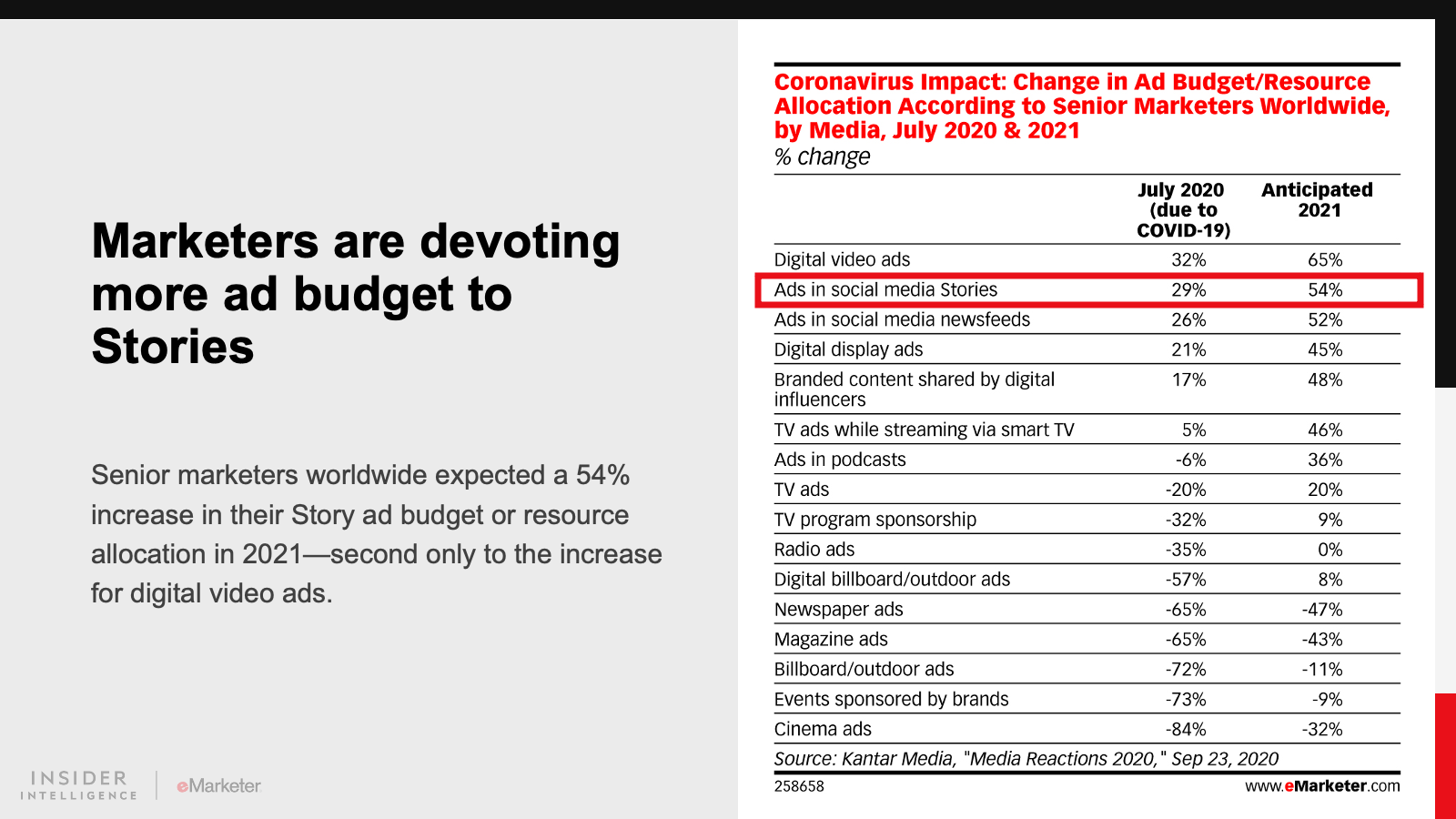 We expect Instagram and its siblings will bring more social commerce features to Stories. We also foresee more video and interactivity. The rise of short-form video is something to keep an eye on, but we believe the uniqueness of the Story format will help it solidify its place as an important venue for social media marketing.