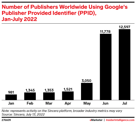 KEY STAT: The number of publishers worldwide that incorporated Google’s publisher provided identifier (PPID) into their bid requests grew more than twelvefold so far in 2022.