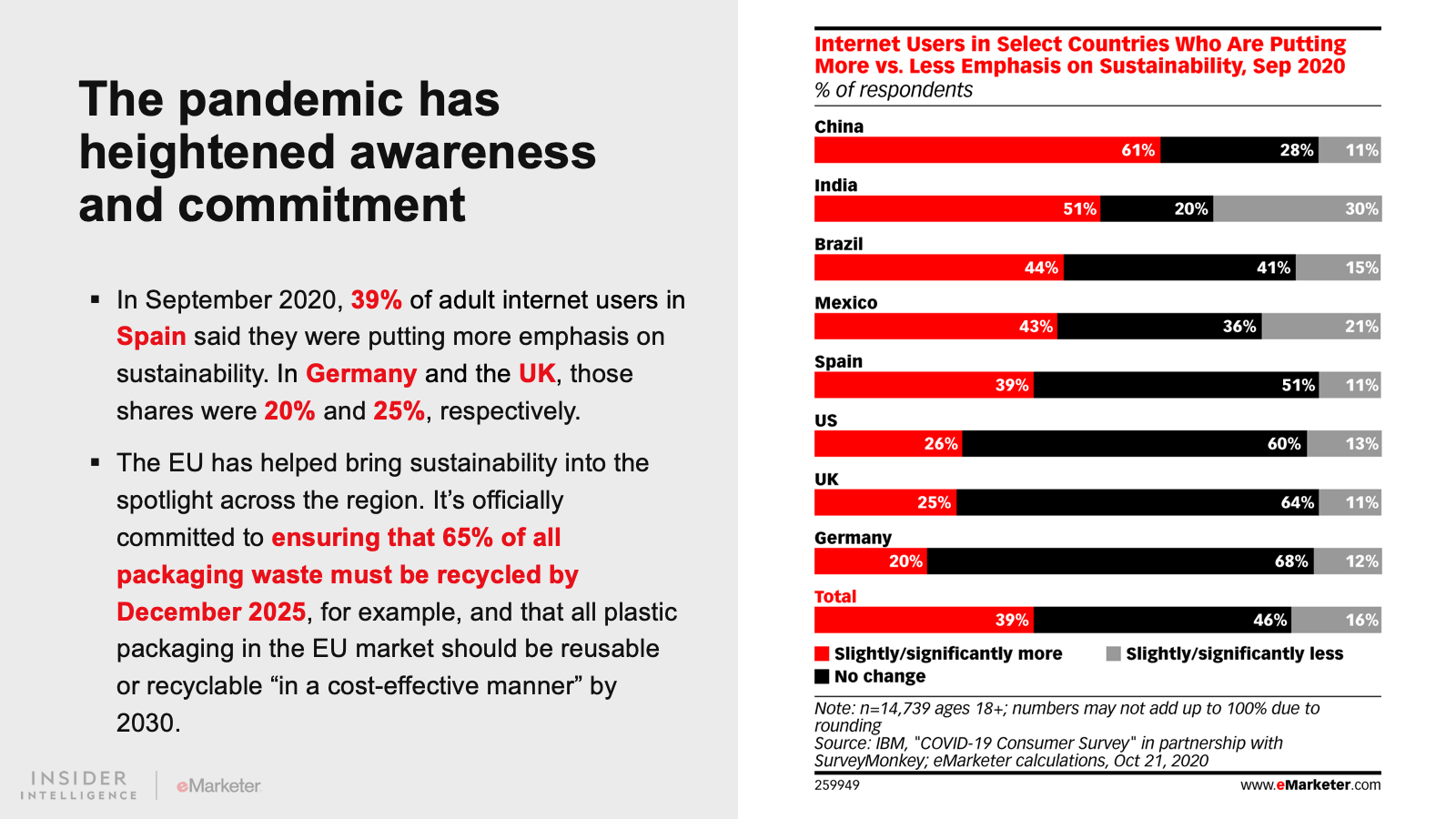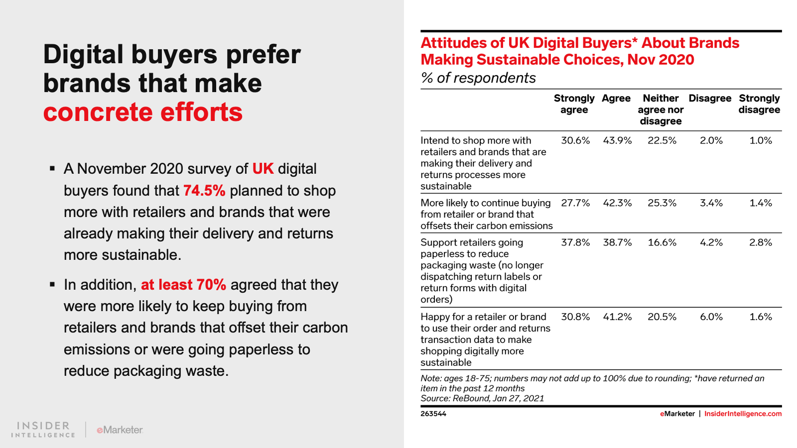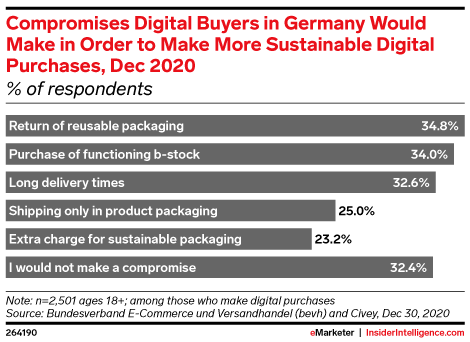 KEY STAT: In Germany, around one-third of digital buyers said they would return packaging or accept longer delivery times to make their ecommerce purchases more eco-friendly.