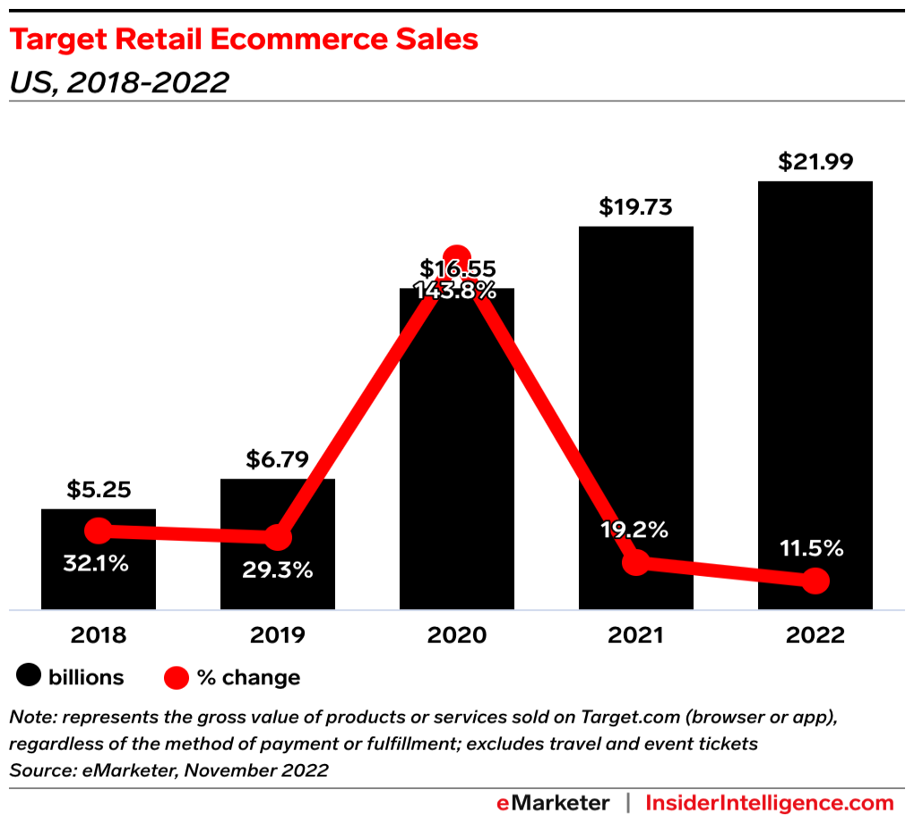 A long-term bet: Target is making a long-term bet on ecommerce sales growth even though its online sales decelerated last year and it is currently struggling with a glut of inventory and slowing sales.