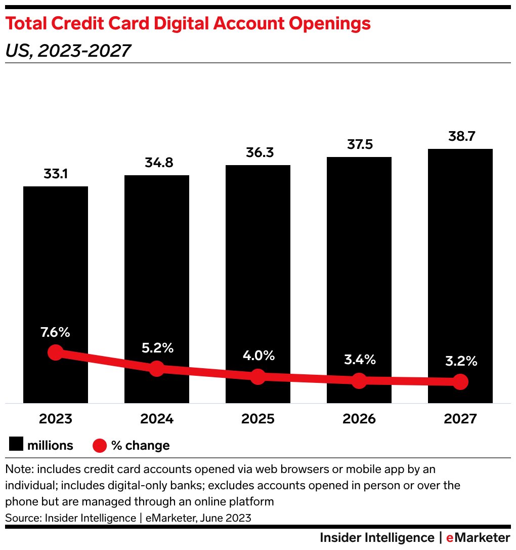 KEY STAT: Credit card digital account opening growth will keep tapering as consumers increasingly opt for alternative financing methods. But evolving offerings—many powered by new tech—will keep them interested.