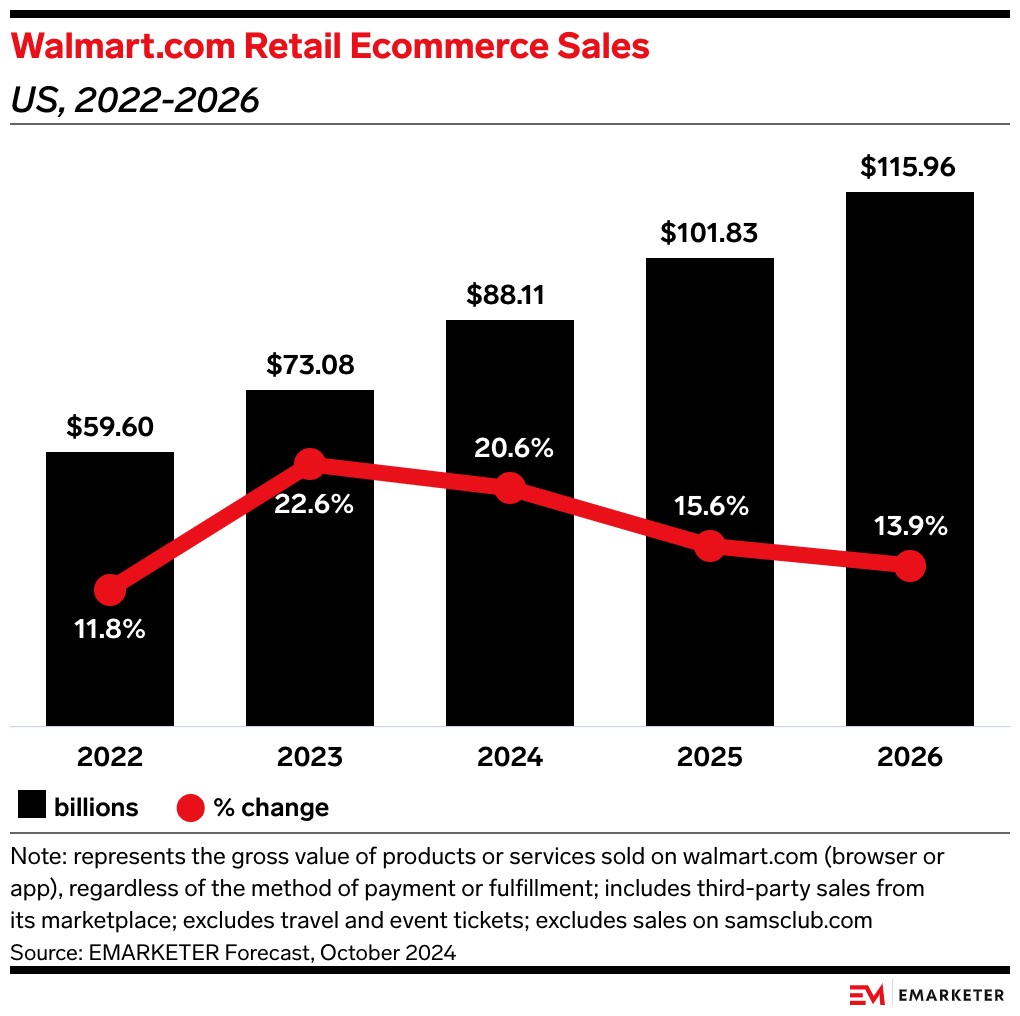 • Consumers want convenience. Making delivery faster and more efficient makes Walmart’s ecommerce offerings—including its Walmart+ membership program—more enticing. It also puts the retailer closer to its goal of achieving ecommerce profitability in the next two years.