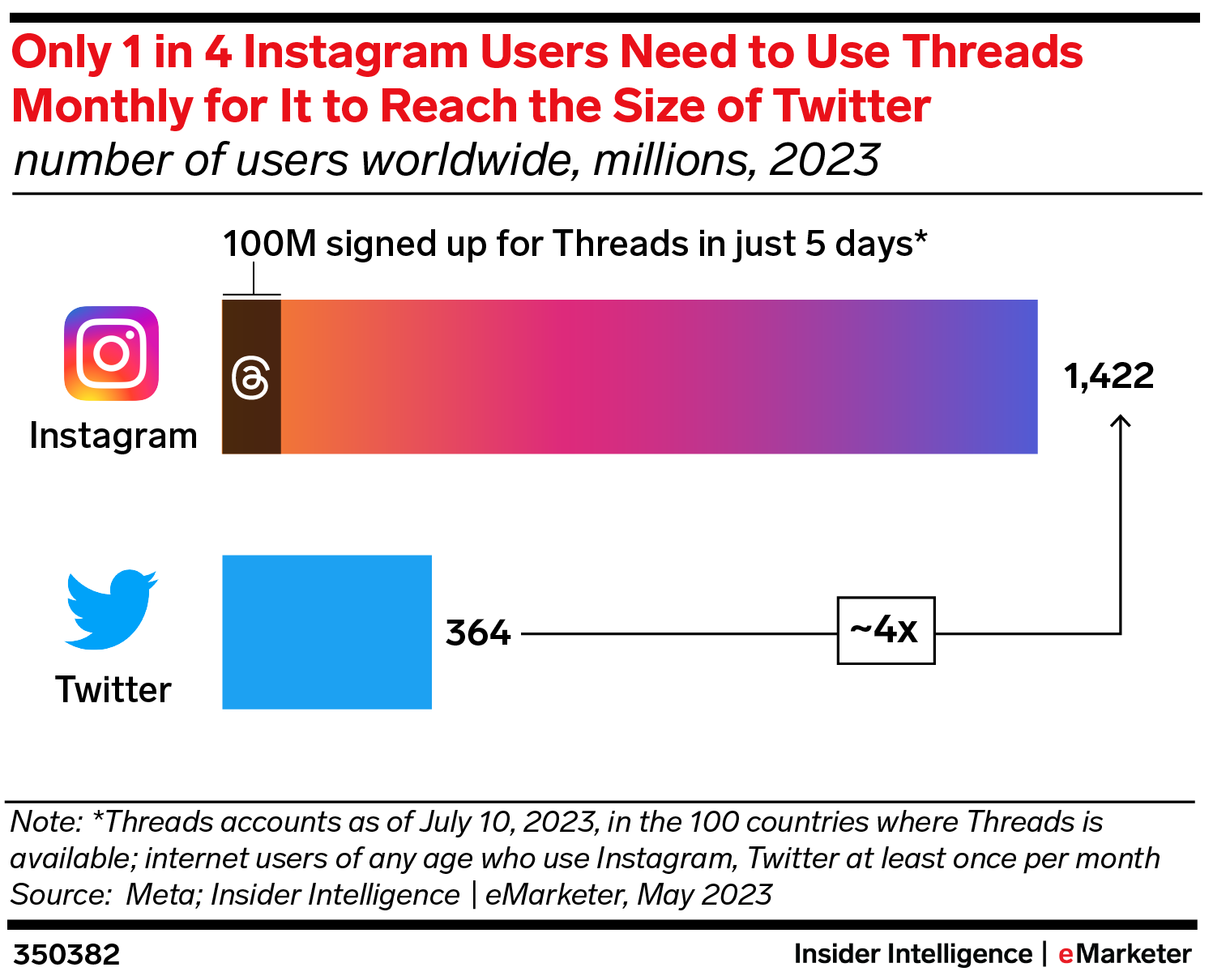 Threads revenues will be incremental for Meta. Investment banking advisory firm Evercore ISI estimates that Threads could generate $8 billion in annual revenues for Meta by 2025. That’s a sizable sum, but it will represent just about 5% of the $147.01 billion we expect for Meta’s global ad revenues that year. Advertising is likely to make up most of those revenues, but subscriptions and paywalled content are also strong options, given Threads’ focus on creators.
