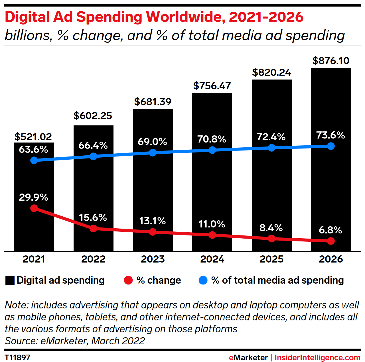 WHAT’S IN THIS REPORT? Our 2022 forecast for worldwide ad spending, digital ad spending, mobile ad spending, display ad spending, and search ad spending. Also, our regional, country-level, and company breakdowns for digital ad spending and revenues.