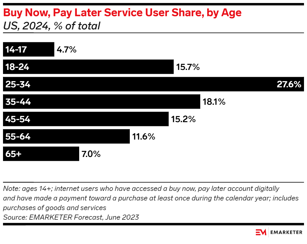 Instead of traditional loans, they’re taking what they think is the faster, easier route: BNPL. Consumers under the age of 35 comprise 48% of BNPL users, per our forecast. By contrast, they comprise just 35% of traditional credit card holders, per a 2023 report from LexisNexis Risk Solutions. Those who can’t or don’t want to go through the approval process can still make purchases with this alternative method.
