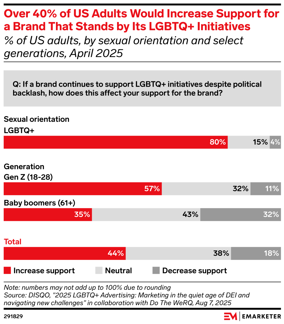 Consumers increase support for brands who stand by LGBTQ+ initiatives, and advertisers who back away face challenges in reaching the next wave of consumers.